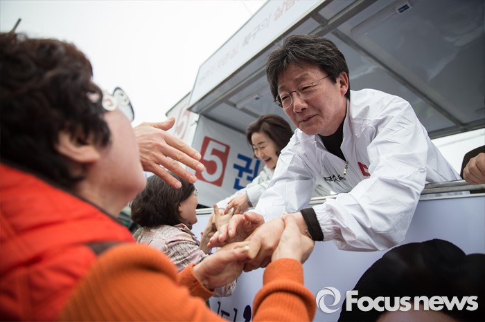 (대구=포커스뉴스) 유승민 무소속 동구을 후보가 6일 오후 대구광역시 북구 칠성시장 앞에서 권은희, 류성걸 무소속 후보와 함께 선거 유세를 하고 있다.