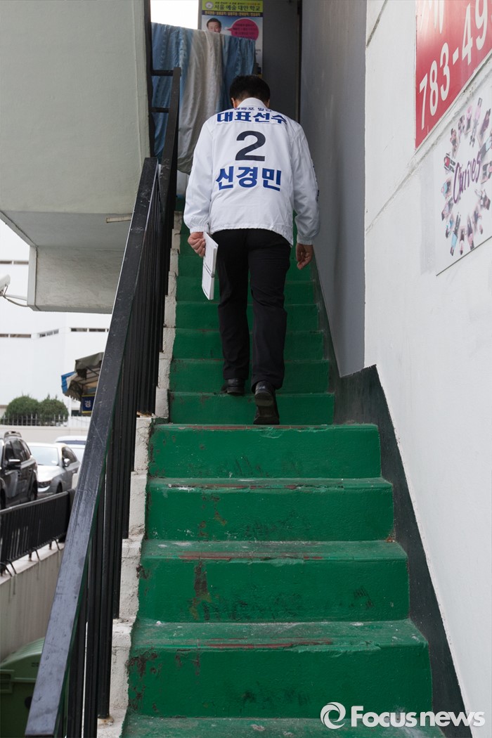 (서울=포커스뉴스) 6일 오후 서울 영등포구 한양아파트 사거리 일대에서 신경민 더불어민주당 영등포구을 후보자가 유세를 하고 있다.
