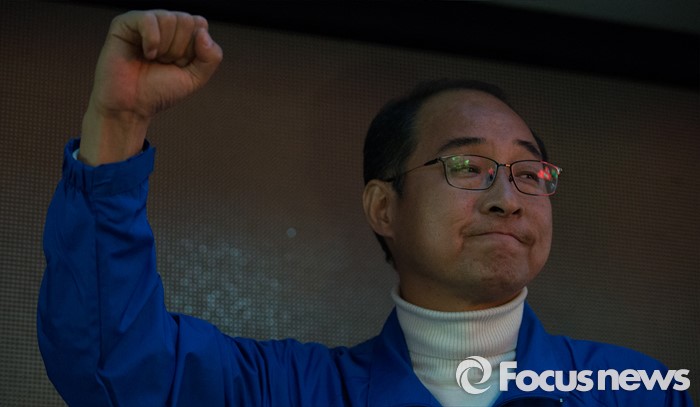 (인천=포커스뉴스) 제20대 총선에 출마한 이성만 더불어민주당 부평갑 후보가 6일 오후 인천 부평구 부개역 인근에서 선거운동을 하고 있다.