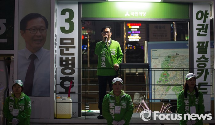 (인천=포커스뉴스) 제20대 총선에 출마한 문병호 국민의당 부평갑 후보가 6일 오후 인천 부평구 부평역 인근에서 선거운동을 하고 있다.