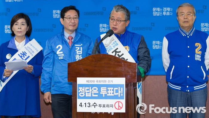 (남양주=포커스뉴스) 7일 오전 경기도 남양주시청에서 조응천 더불어민주당 남양주갑 후보가 공동정책 공약을 발표하고 있다.