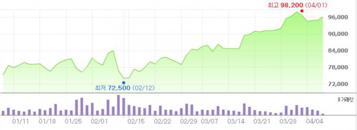 이에 따라 에스오일에 대한 투자의견을 '매수'로 유지하고, 목표주가를 14만원으로 상향 조정했다.최근 3개월간 에스오일 주가 추이 <그래픽출처=네이버>