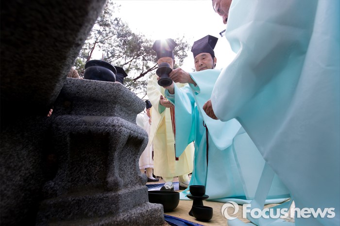 (남양주=포커스뉴스) 7일 오전 경기 남양주 다산유적지에서 손학규 전 더불어민주당 상임고문이 초헌관으로 참석해 다산 정약용 선생 180주기 묘제·헌다례를 하고 있다.