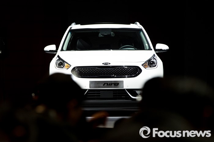 지난달 공식 출시된 니로는 기아차가 첨단 하이브리드 기술을 집약해 처음 선보이는 친환경 소형 SUV로 19.5㎞/ℓ의 국내 SUV 최고 연비가 강점이다.(서울=포커스뉴스) 29일 오전 서울 광진구 쉐라톤 그랜드 워커힐에서 기아차 친환경 소형 SUV '니로(NIRO)'가 공개돼고 있다. 니로는 리터당 19.5km의 연비, 취득세 감면 및 보조금 등의 혜택을 통한 가격 경쟁력, 여유로운 실내와 넉넉한 트렁크, 7 에어백, 차선이탈경보, 자동 긴급제동 보조 시스템 등 을 통해 경제성, 공간성, 안전성 면에서 경쟁력을 갖췄다. 2016.03.29 강진형 기자