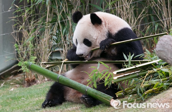 (용인=포커스뉴스) 에버랜드가 오는 21일 일반관람객에게 공개를 앞두고 판다월드에서 생활 중인 시진핑 중국 국가주석의 선물 '아이바오(愛寶)'와 '러바오(樂寶)' 판다커플을 7일 언론에 공개했다. 사진은 암컷 판다 아이바오의 모습.