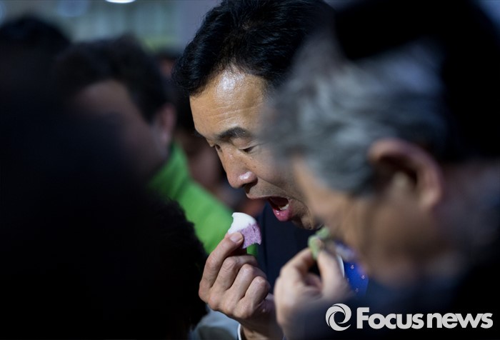 (남양주=포커스뉴스) 7일 오전 경기 남양주 다산유적지 실학박물관에서 손학규 전 더불어민주당 상임고문이 '다산 정약용에게 배우는 오늘의 지혜'라는 주제로 특별강연을 마치고 떡을 시식하고 있다.