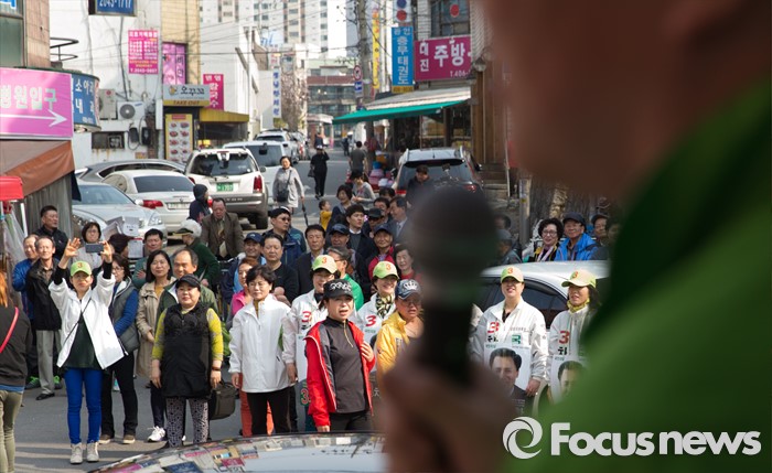 (서울=포커스뉴스) 7일 오후 서울 송파구 마천시장에서 안철수 국민의당 상임공동대표가 차성환 국민의당 송파구병 후보 지원유세를 하고 있다.