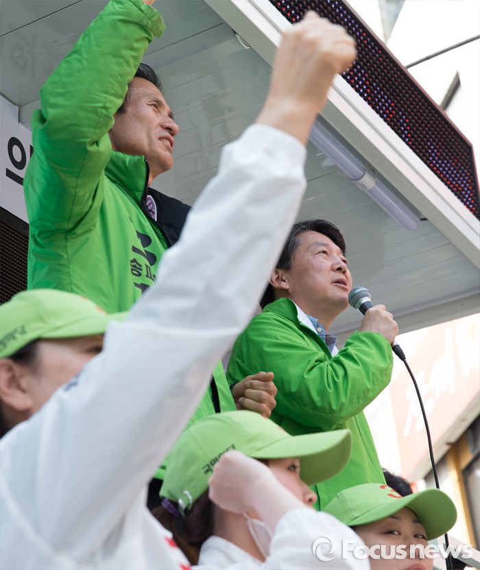 (서울=포커스뉴스) 7일 오후 서울 송파구 마천시장에서 안철수 국민의당 상임공동대표가 차성환 국민의당 송파구병 후보 지원유세를 하고 있다.