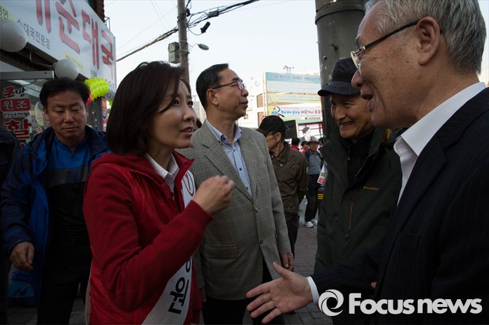 | △ 시민들과 이야기 하는 나경원 후보 |