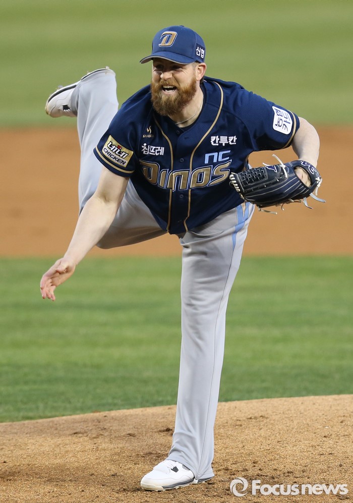(서울=포커스뉴스) 7일 서울 잠실구장에서 열린 2016 프로야구 NC-두산 경기에서 1회말 NC 선발투수 해커가 투구하고 있다.