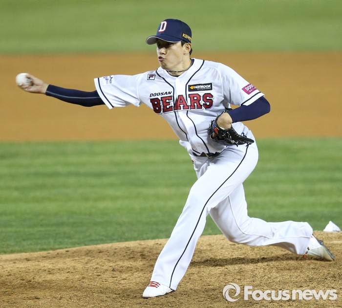 (서울=포커스뉴스) 7일 서울 잠실구장에서 열린 2016 프로야구 NC-두산 경기에서 두산 투수 오현택이 9회 등판해 투구하고 있다.