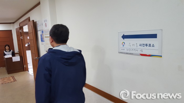 오전 8시 20분쯤 두 손을 꼭 잡고 투표소로 들어온 50대 부부는 "내일 스페인으로 여행가기 때문에 미리 투표하러 왔다"며 "솔직히 정치하는 모습을 보면 투표하기 싫은데 그래도 어쩌겠냐"고 말했다.