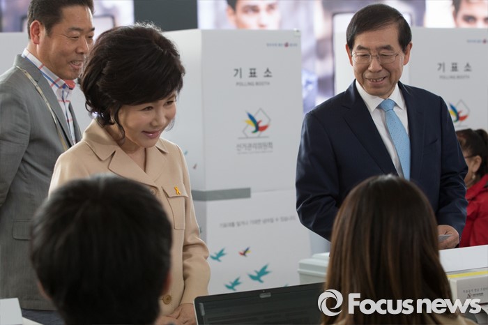 | △ 투표하는 박원순 시장 부부 |