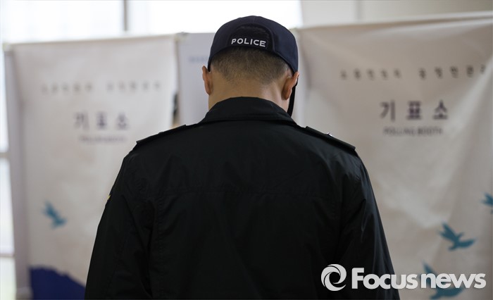(인천=포커스뉴스) 제20대 국회의원 선거 사전투표 시작일인 8일 오전 인천 연수구 송도1동 주민센터에서 인천 중부해양경비안전본부 소속 해경이 투표를 기다리고 있다.