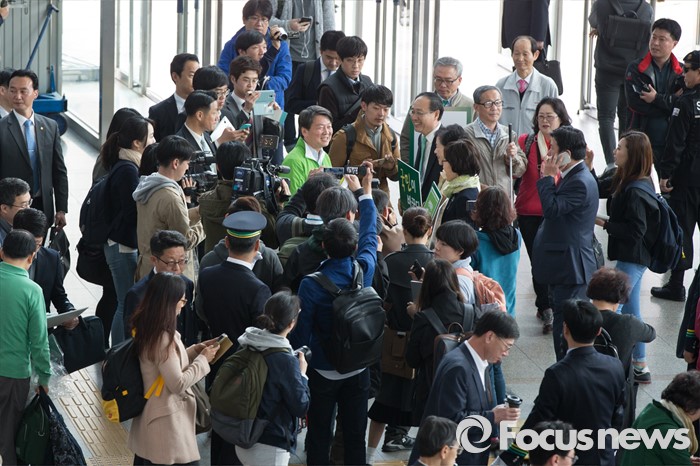 (서울=포커스뉴스) 4.13총선 사전투표 첫째날인 8일 오전 서울 용산구 서울역에서 안철수 국민의당 상임공동대표가 투표격려 캠페인을 하고 있다.