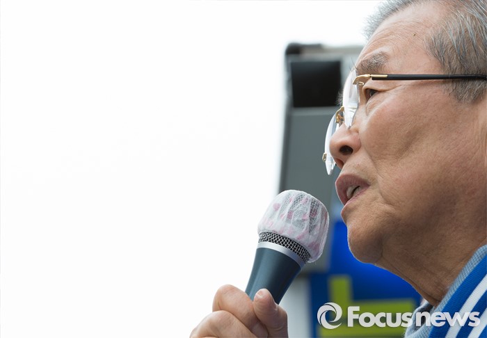 (김포=포커스뉴스) 김종인 더불어민주당 비대위 대표 겸 선대위원장이 8일 오후 경기 김포 장기사거리에서 김두관 김포시갑 후보와 정하영 김포시을 후보 합동지원유세를 하고 있다.