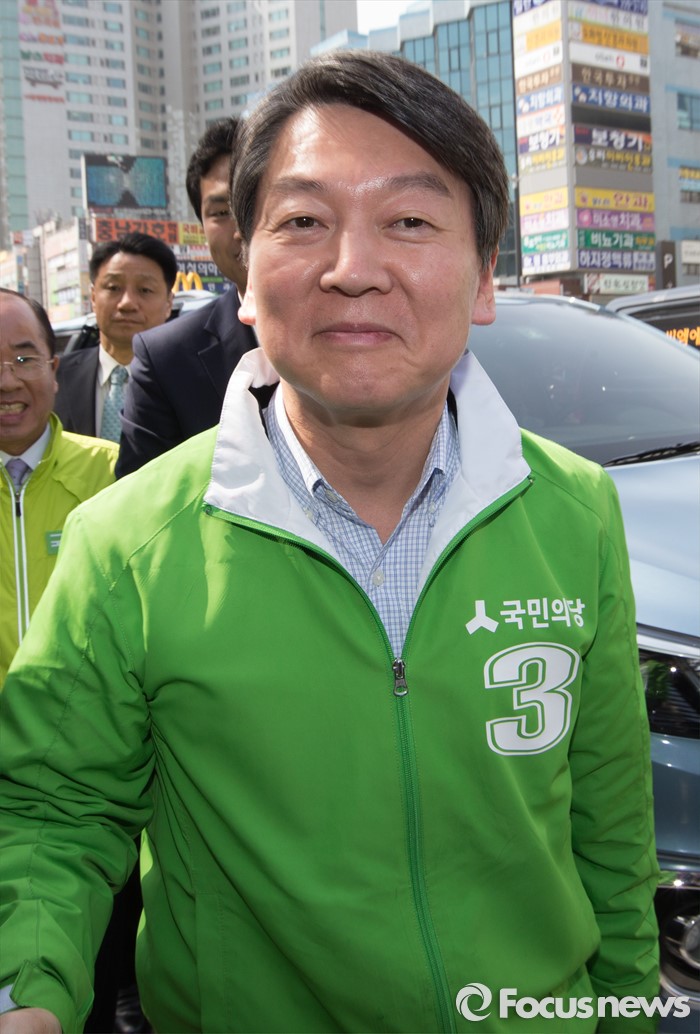 (천안=포커스뉴스) 안철수 국민의당 대표가 8일 오후 충남 천안 신부동 신세계백화점 앞에서 천안에 출마한 후보의 지지를 호소하고 있다.
