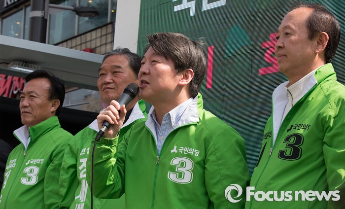 (천안=포커스뉴스) 안철수 국민의당 대표가 8일 오후 충남 천안 신부동 신세계백화점 앞에서 천안에 출마한 후보의 지지를 호소하고 있다.