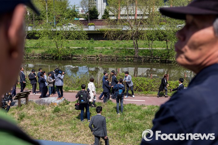 (광주=포커스뉴스) 문재인 더불어민주당 전 대표와 김홍걸 국민통합위원장이 8일 오후 광주시 서구 광주천일대를 거닐며 지역주민들과 인사 하고 있다.