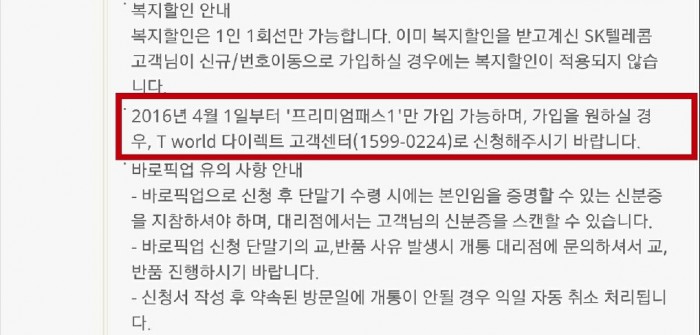 하지만 SK텔레콤은 SK텔레콤 고객에게 공지도 하지 않은 채 돌연 프리미엄패스2를 폐지했다. 때문에 고객센터에 문의가 이어지고 있으며 고객 불만도 고조되고 있는 상황이다. 1년만 약정을 유지하면 새로운 휴대폰으로 바꿀 수 있다는 것이 장점이었는데, SK텔레콤이 기기변경 고객의 혜택을 축소하려는 의도가 아니냐는 지적도 나오고 있다. 소비자들은 “4월1일에 휴대폰을 구매할 예정이었는데 10만원이 넘는 위약금을 내게 생겼다”, “아무런 공지 없이 폐지해 없어진 줄도 몰랐다”, “기변고객에 주는 혜택이었는데 기변 고객 혜택이 점점 줄어드는 느낌이다”라고 토로했다.