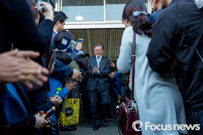 (광주=포커스뉴스) 문재인 더불어민주당 전 대표가 8일 오후 광주광역시 광산구 월곡시장을 방문해 지지자들과 인사 하고 있다.