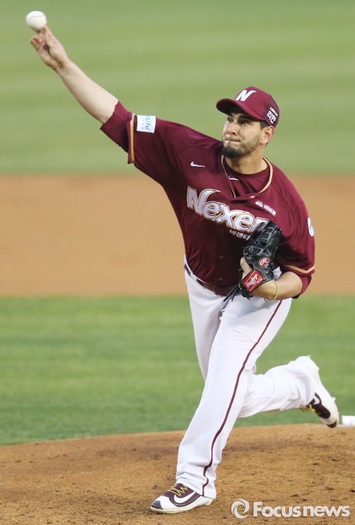 (서울=포커스뉴스) 8일 서울 잠실구장에서 열린 2016 프로야구 넥센-두산 경기에서 1회말 넥센 선발투수 코엘로가 투구하고 있다.