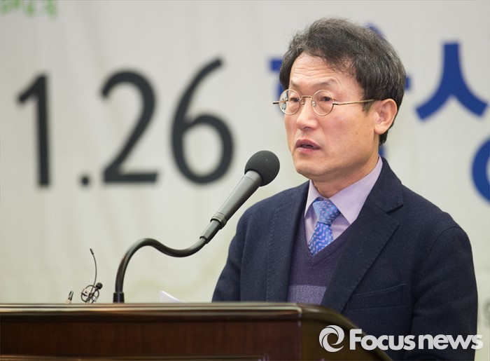 이어 "공무원들은 적법절차를 지키지 않고 조 교육감 등을 체포 내지 구금했을 뿐만 아니라 가혹행위로 허위자백을 받아내 유죄판결이 선고됐다"며 "불법행위로 정신적 고통을 당해 이에 대한 손해를 배상해야 한다"고 판단했다.26일 오후 서울 중구 한국프레스센터에서 열린 '1.26 서울 학생 인권의 날 선포식'에 참석한 조희연 서울시 교육감이 환영사를 하고 있다. 2016.01.26 오장환 기자