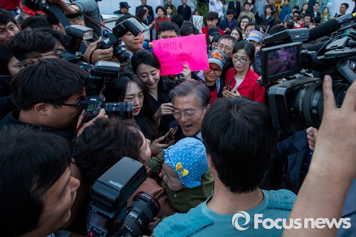퐁광주=포커스뉴스) 문재인 더불어민주당 전 대표가 8일 오후 광주광역시 광산구 월곡시장을 방문해 시민들과 악수 하고 있다.