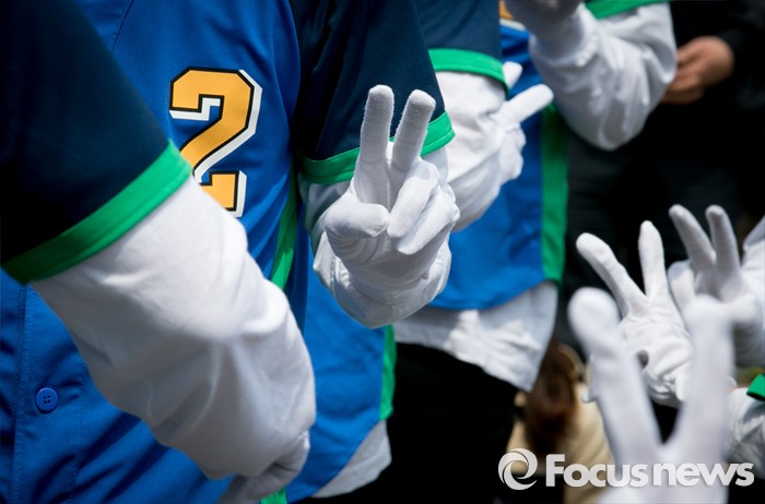 (대전=포커스뉴스) 9일 오후 대전 서구 도마네거리에서 박병석 더불어민주당 대전서구갑 후보의 유세단이 로고송에 맞춰 율동을 선보이고 있다.