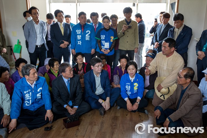 (광주=포커스뉴스) 문재인 더불어민주당 전 대표가 9일 오전 광주광역시 서구 발산마을회관을 방문해 주민들의 애로사항을 청취하고 있다.