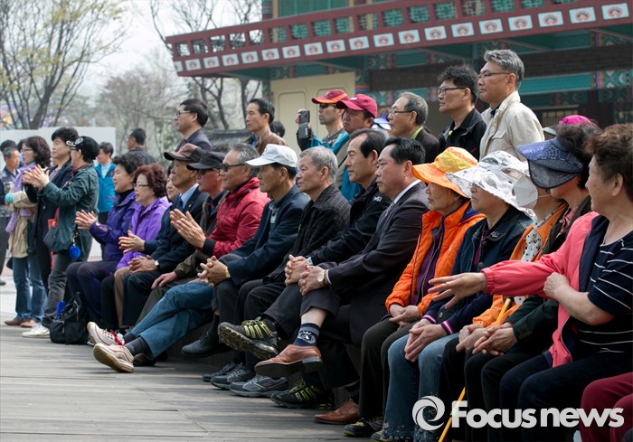 (서울=포커스뉴스) 10일 오전 서울 어린이대공원 앞에서 시민 및 지지자들이 김종인 더불어민주당 비대위 대표 겸 선대위원장과 전혜숙 광진갑 후보의 선거유세를 지켜보고 있다.
