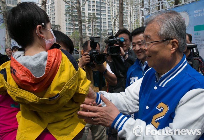 | △ 아이와 인사하는 김종인 |