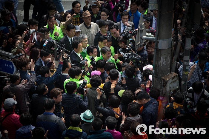 | △ 인파에 둘러쌓인 안철수-정호준 |