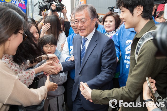 (서울=포커스뉴스) 문재인 더불어민주당 전 대표가 10일 오후 서울 CGV 강남점 앞에서 김성곤 더불어민주당 강남갑 후보, 전원근 강남병 후보, 이정근 서초갑 후보, 김기영 서초을 후보와 함께 유권자들에게 지지를 호소하고 있다.