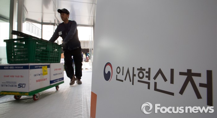 (세종=포커스뉴스) 세종시로 이전한 인사혁신처 직원들이 첫 출근한 11일 오전 세종시 절재로 인사혁신처에 집기류가 운반되고 있다.