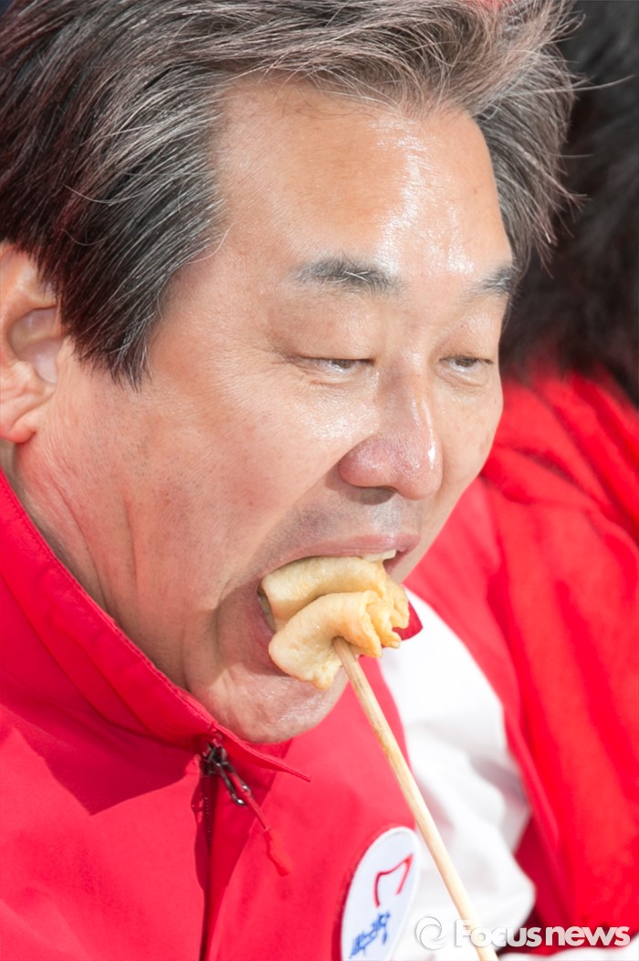 | △ 김무성, 어묵 한입 |