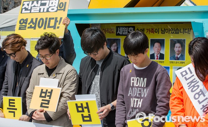 4·16연대 관계자는 "참사 이후 대한민국이 바뀌어야 한다고 했지만 바뀐 것이 없다"며 "이번 추모행사를 통해 시민여러분이 4·16참사를 기억해 주시고 변화를 위해 행동해주시기 바란다"고 전했다.지난 4일 오후 서울 광화문광장에서 열린 4·16 세월호 참사 2주기 대학생 준비위원회 발족식에 참석한 청년들이 희생자들을 위해 묵념하고 있다. 양지웅 기자