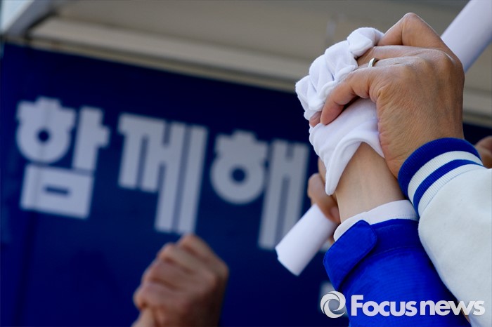 (광명=포커스뉴스) 20대 총선을 이틀 앞둔 11일 오후 경기도 광명 하안사거리에서 김종인 더불어민주당 비대위 대표 겸 선대위원장이 이언주 광명을 후보와 손을 잡고 인사하며 지지를 호소하고 있다.