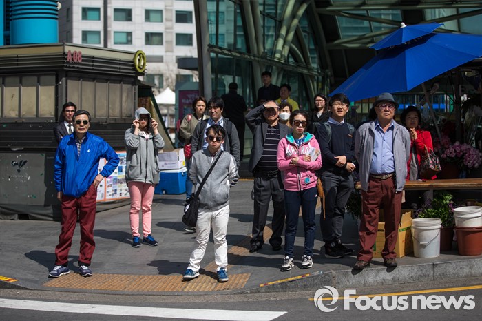 (고양=포커스뉴스) 시민들이 11일 오후 경기도 고양시 덕양구 세이브존 쇼핑몰 앞에서 심상정 정의당 후보의 총선 유세를 지켜보고 있다.