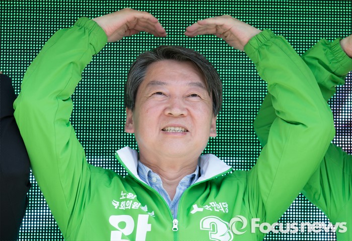 (청주=포커스뉴스) 안철수 국민의당 대표가 11일 오후 충북 청주시 사창사거리에서 20대 국회의원 충북도에 출마한 국민의당 후보의 지지를 호소하며 하트를 보이고 있다.