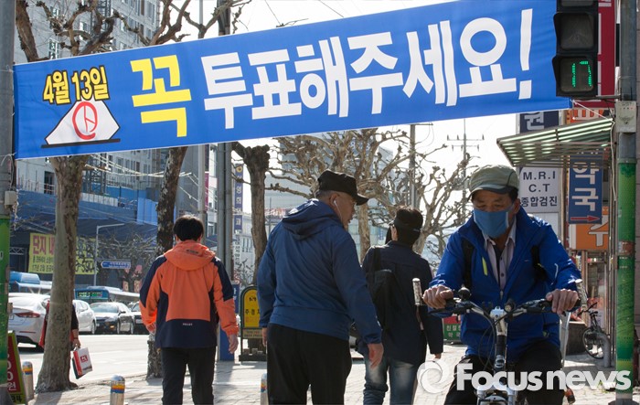 (청주=포커스뉴스) 20대 국회의원 선거를 이틀 앞둔 11일 오후 충북 청주시 복대동에 선거독려 현수막이 걸려져 있다.
