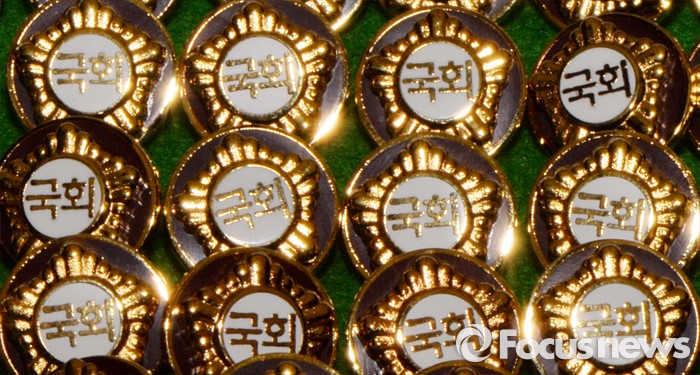 (서울=포커스뉴스) 4.13총선을 이틀 앞둔 11일 오후 서울 여의도 국회에서 20대 국회의원 당선자들이 착용할 배지가 공개되고 있다.