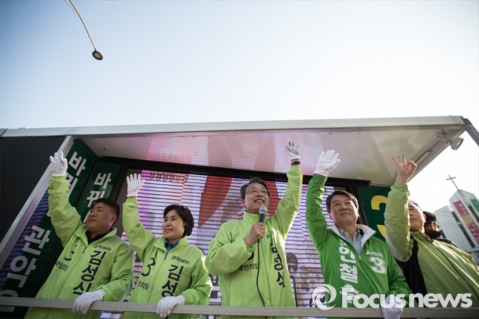 (서울=포커스뉴스) 안철수 국민의당 상임공동대표가 11일 오후 서울 관악구 롯데백화점 앞에서 김성식 관악갑 후보 지원 유세를 하고 있다.