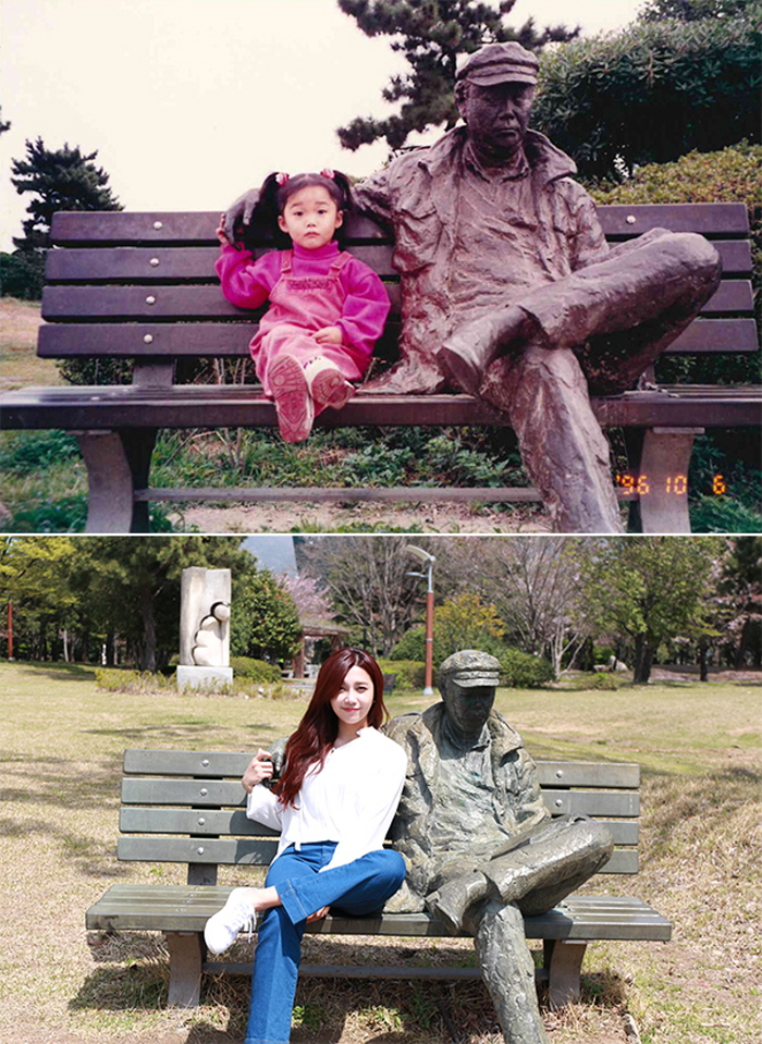 정은지는 새 앨범 발매를 앞두고 추억이 깃든 장소를 찾아 과거 사진과 같은 포즈를 취하고
