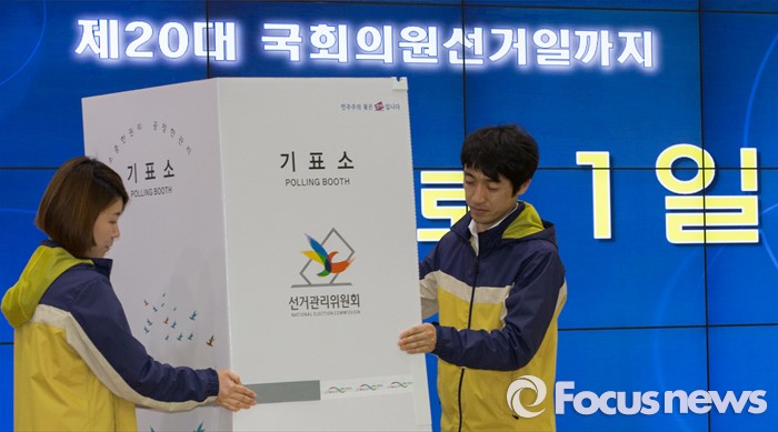 (과천=포커스뉴스) 2016 제20대 국회의원선거를 하루 앞둔 12일 오전 경기도 과천시 중앙선거관리위원회에 설치된 상황실에서 직원들이 업무를 보고 있다.