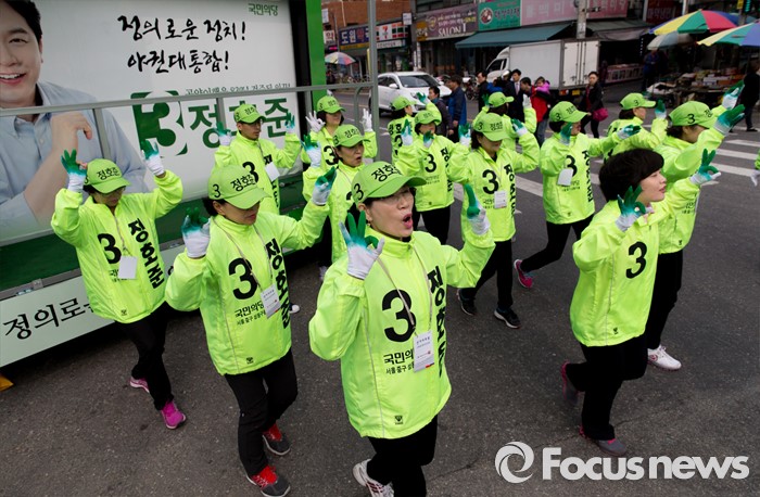 (서울=포커스뉴스) 12일 오전 서울 성동구 금장시장 앞에서 정호준 중구성동구을 후보 선거운동원들이 지지를 호소하고 있다.