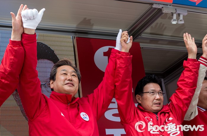(안산=포커스뉴스) 4.13 총선을 하루 앞둔 12일 오전 경기 안산시 한대앞역 인근에서 홍장표 새누리당 안산시상록구을 후보 지원유세에 나선 김무성 대표가 유권자들의 지지를 호소하고 있다.