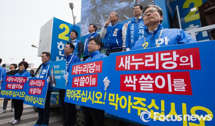 (청주=포커스뉴스) 국회의원 선거를 하루 앞둔 12일 오전 충북 청주 상당구 육거리시장 앞에서 김종인 더불어민주당 대표가 청주지역 후보의 지지를 호소하고 있다.
