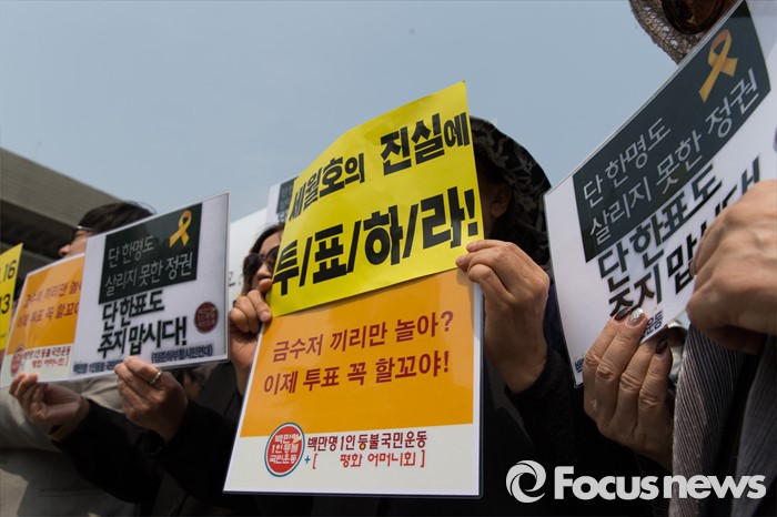 (서울=포커스뉴스) 제20대 국회의원 선거를 하루 앞둔 12일 오전 서울 광화문광장에서 2016 총선시민네트워크 회원들이 총선 투표참여를 호소하는 기자회견을 하고 있다.