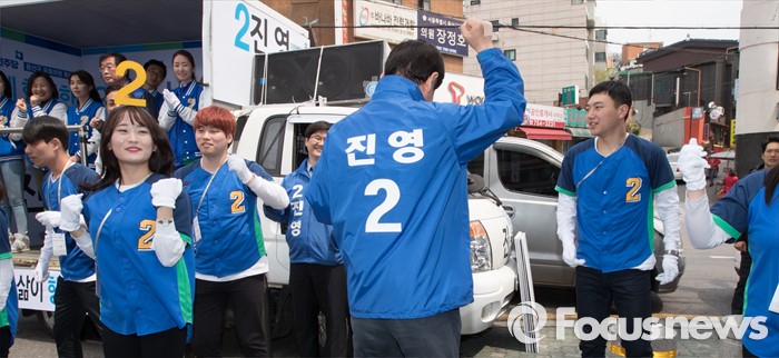 (서울=포커스뉴스) 2016 제20대 국회의원선거를 하루 앞둔 12일 오후 서울 용산구 후암시장 인근에서 진영 서울 용산구 후보가 유권자들에게 지지를 호소하고 있다.